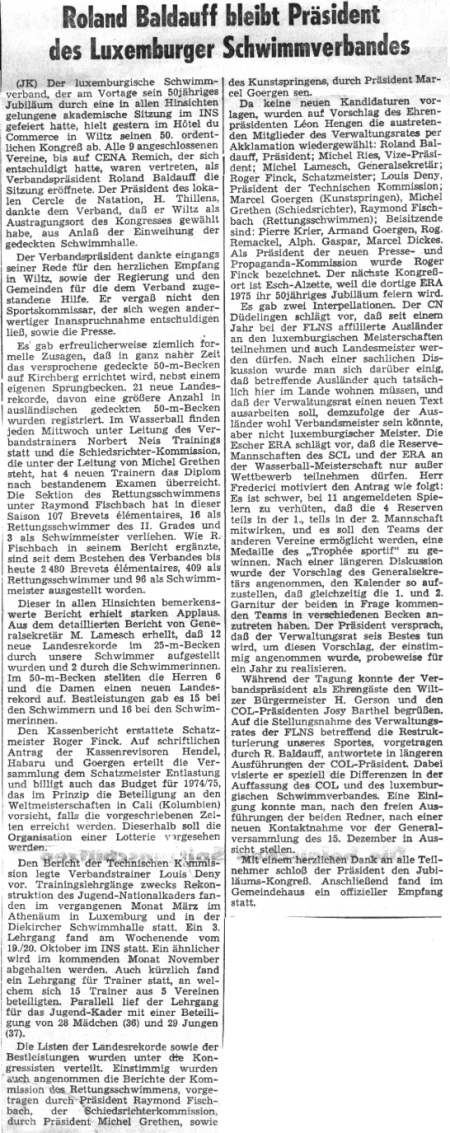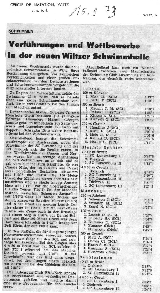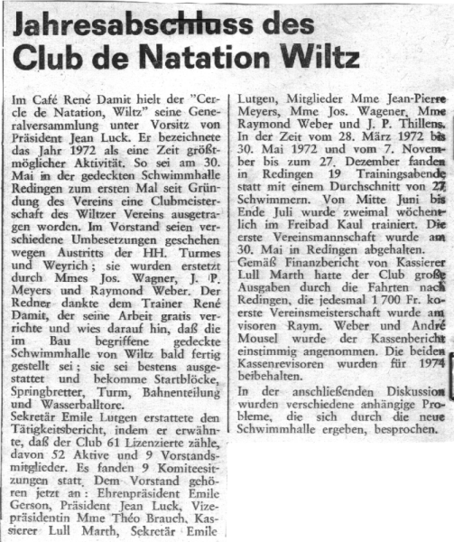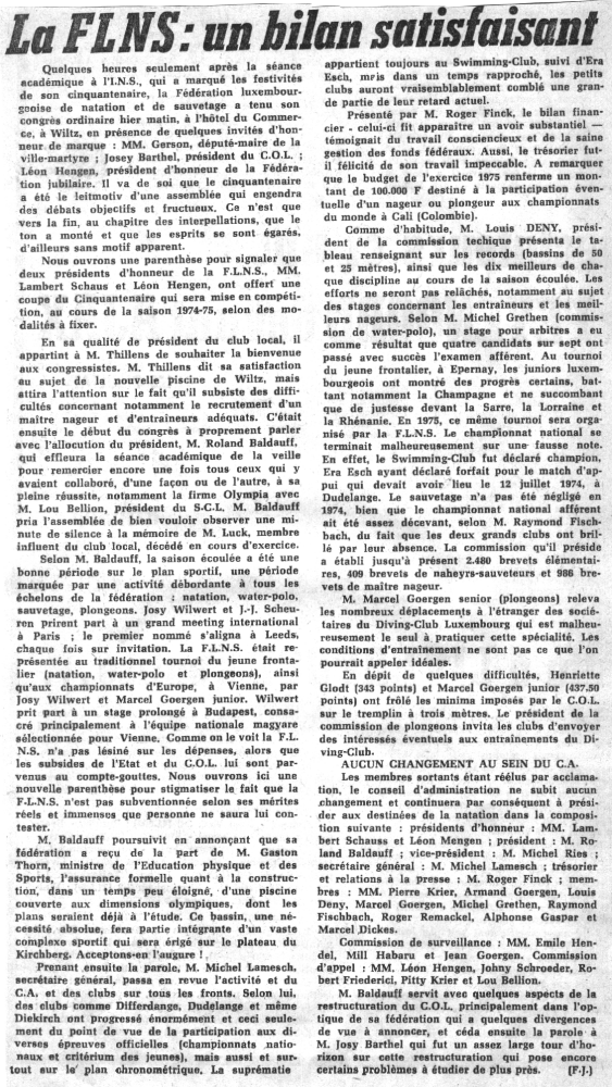 Im 50. Jahr des Bestehens des Luxemburger Schwimmverbandes FNLS 1974 fand das erste Mal dessen Generalversammlung in Wiltz statt [