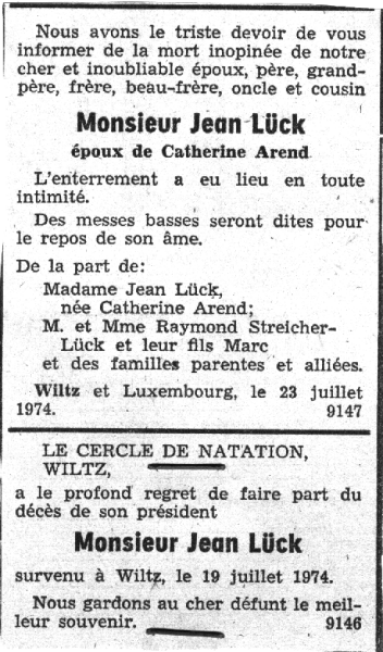 Cette année 1974, si importante pour le CNW, fut malheureusement ombragée par le décès imprévisible du président Jean Lück [
